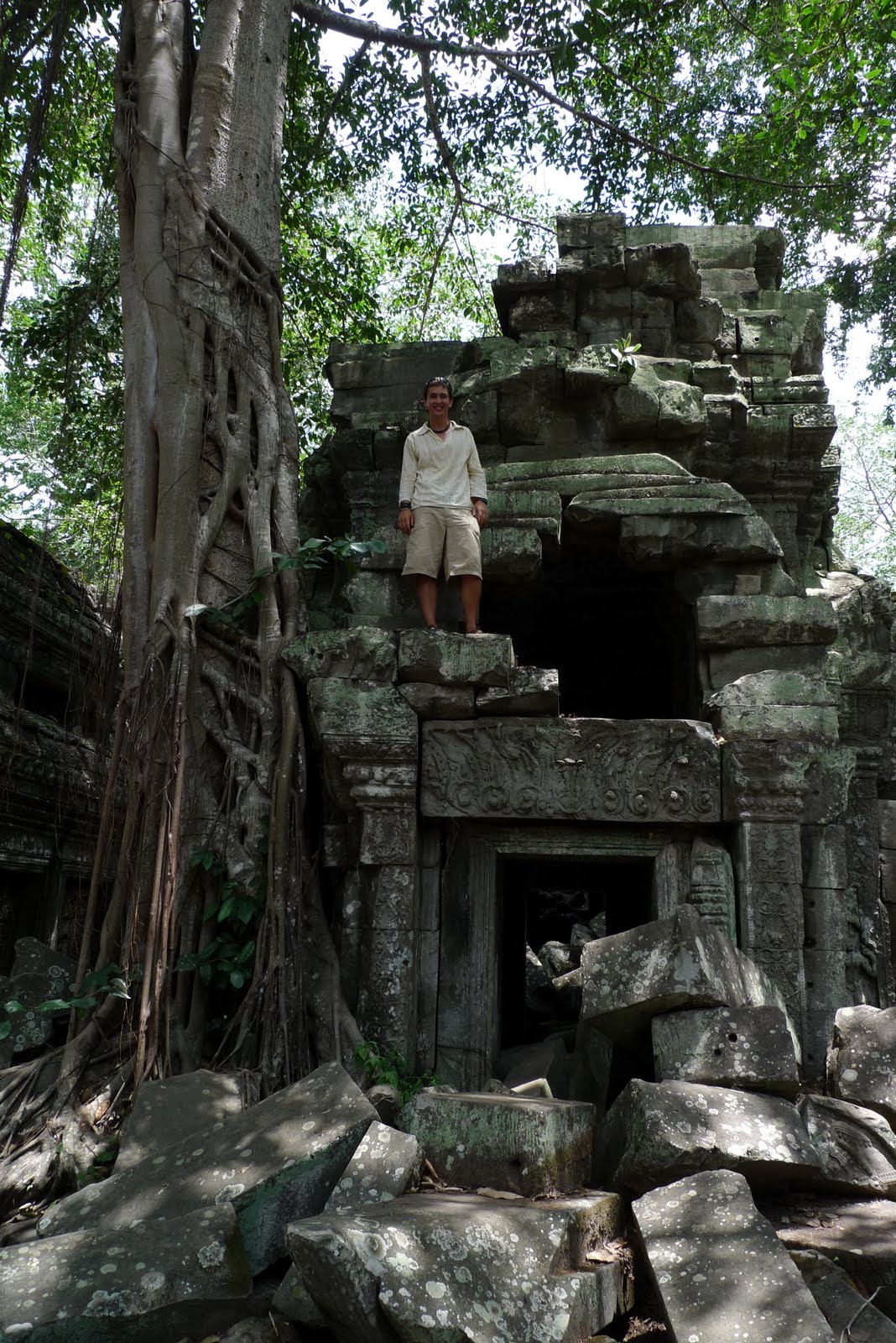 A great day at and around Angkor Wat! We got in our private tuk tuk at 4:30 a.m. and headed in the dark to Angkor Wat. We watched the sunrise (which wasn't that great...) with a hundred other tourists. We were well looked after by vendors who brought us tea and chairs and reminded us that they were at stall number 8 if we should choose to come for breakfast. After an overpriced breakfast ($3), we checked out the magnificent Angkor Wat. We spent several hours at this huge temple. We then did the 'short circuit' with our tuk tuk driver. Ta Prohm stole the show. We spent a lot of time exploring the dilapidated temple where Tomb Raider was filmed. Pathways had been partially collapsed and giant trees grew amongst the rubble. It was amazing. You could walk through random corridors and tunnels until you thought you were completely lost, only to pop out from a crack and be surrounded by other tourists on a wooden walkway. Most people didn't bother exploring and stayed to the marked route, but Dave, Emily and I went everywhere. I couldn't stop taking pictures. Luckily I found a card reader here in Siem Reap (!!!) so I can just let you look at them!! (as well as all the other pictures I have taken this trip) Make sure you 'go to older posts' on the previous pages to see all of the pictures; there are quite a few.